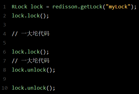 那如果客户端 1 都已经持有了这把锁了,结果可重入的加锁会怎么样呢?比如下面这种代码:
