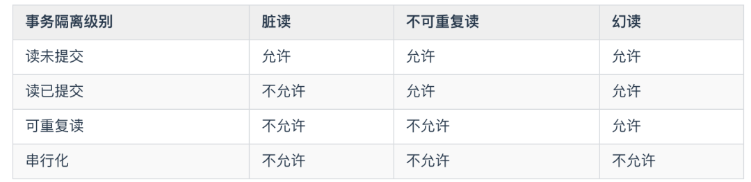 这四个隔离级别可以解决脏读、不可重复读、幻象读这三类问题。总结如下