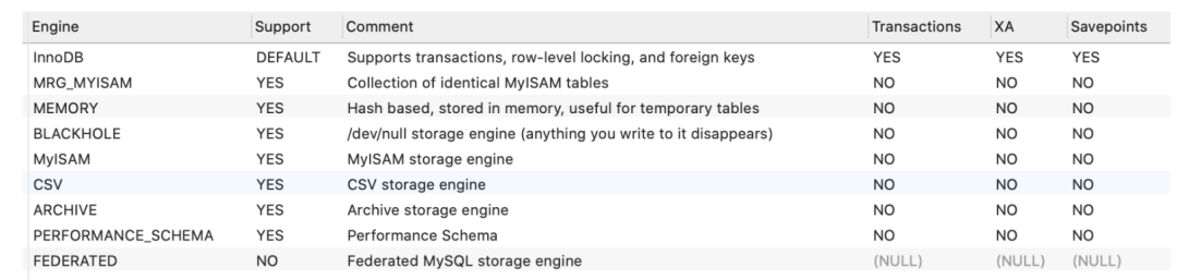 命令,来列出所有的存储引擎