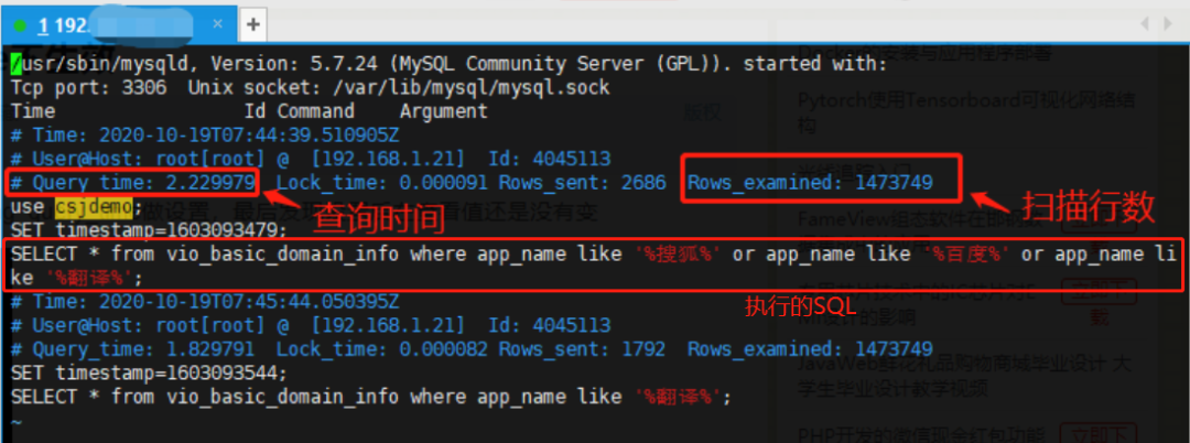 如上图,是执行时间超过 1 秒的 SQL 语句(测试):