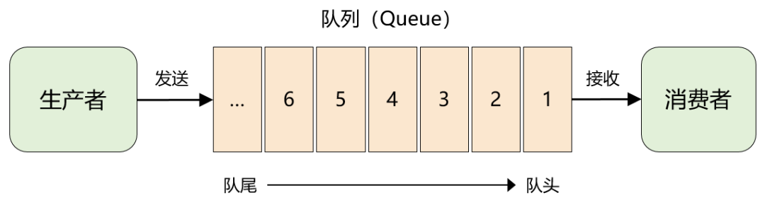 2、队列:大家应该再熟悉不过了,是一种先进先出数据结构。它是存放消息的容器,消息从队尾入队,从队头出队,入队即发消息的过程,出队即收消息的过程。