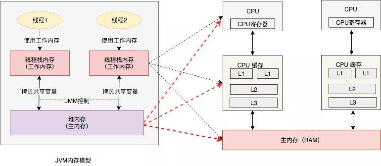 共享变量(类变量以及对象的全局实例变量等都是共享变量)存储于主内存中,每个线程都可以访问,这里的主内存可以看成是堆内存。