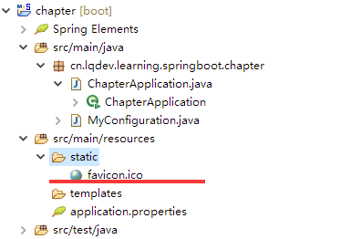 原来我们在使用tomcat开发时,设置网站图片时,即icon图标时,一般都是直接替换root包下的favicon.ico替换成自己的,或者在网页的头部设置link的ref为icon然后设置其href值。而在SpringBoot中,替换图片也是很简单的,只需要将自定义图片放置在静态资源目录下即可,即默认有static、public、resources、/META-INF/resources或者自定义的静态目录下即可。
