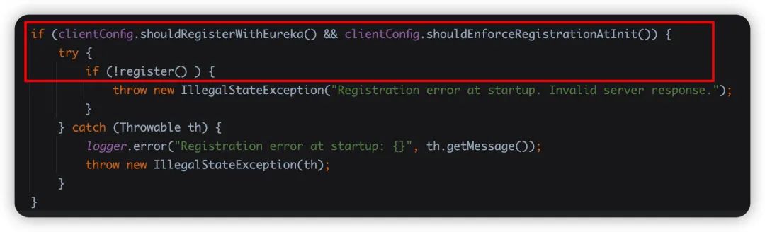 DiscoveryClient注入的时候,这个看了下,clientConfig.shouldEnforceRegistrationAtInit()默认是false,方法不会进来,不管他了。