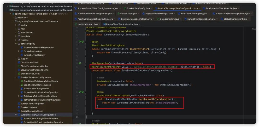 eureka.client.healthcheck.enabled=true,就会创建 HealthCheckHandler的实例出来,默认情况下他是false的,所以应该是对我们没有影响的。