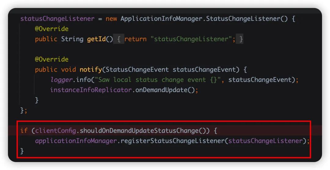 DiscoveryClient注册了状态事件变更的监听,如果状态发生变更,也会去调用 onDemandUpdate ,影响延迟注册的效果。onDemandUpdateStatusChange,默认是true,所以应该是他没错了。