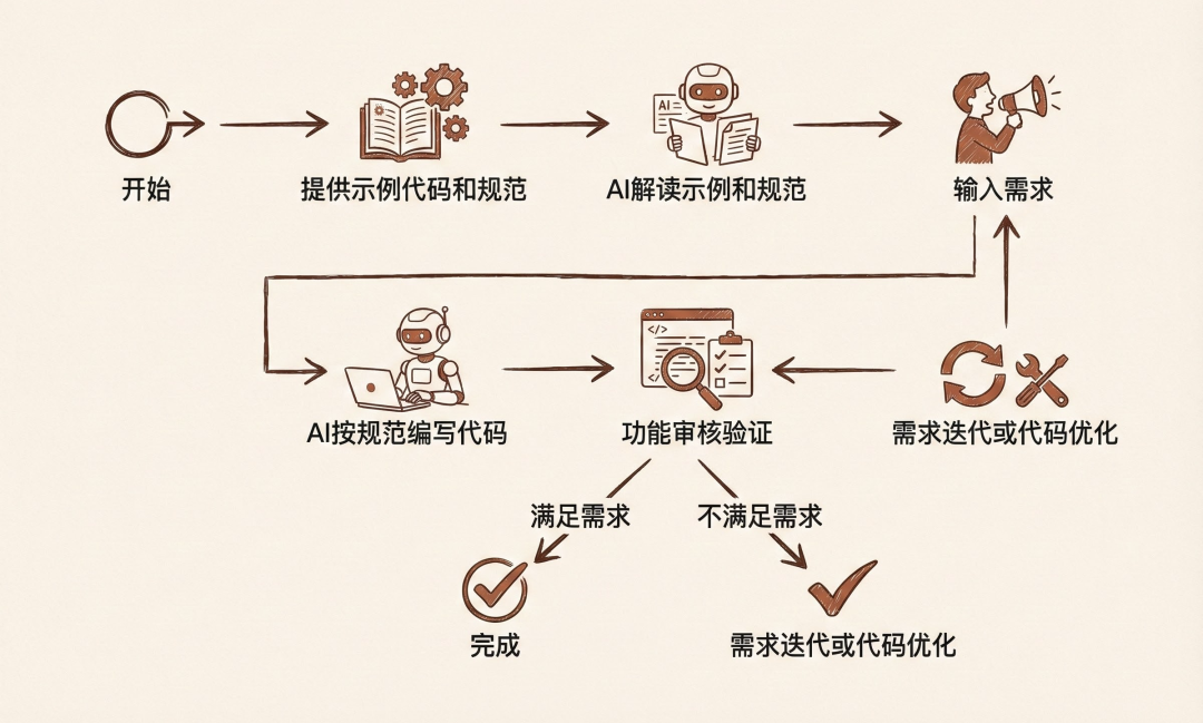 以下是作者实践后提炼的人与 AI 协同编程实践核心流程。