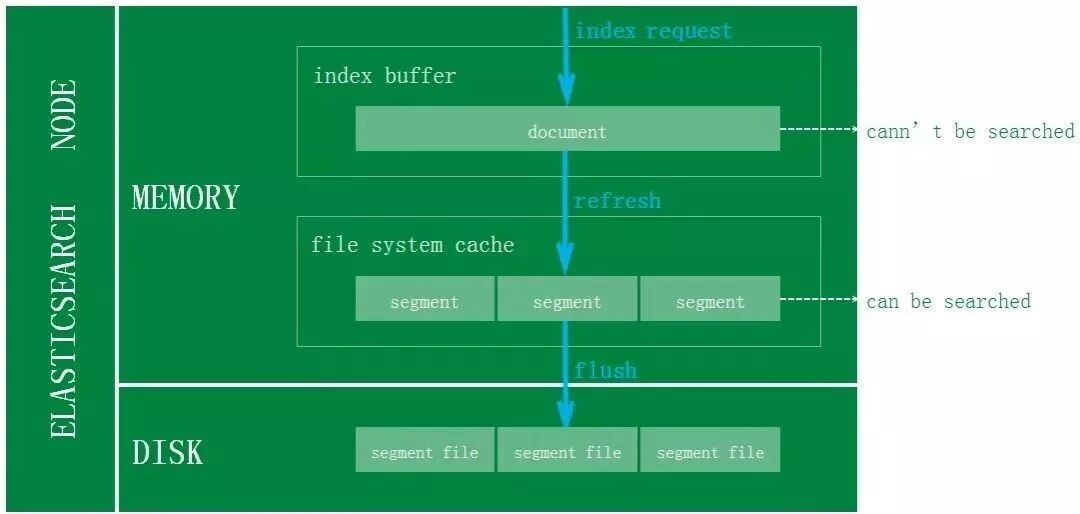 对于ES写入机制的有了解的同学可能会知道,新增的文档会被收集到Indexing Buffer,然后写入到文件系统缓存中,到了文件系统缓存中就可以像其他的文件一样被索引到。